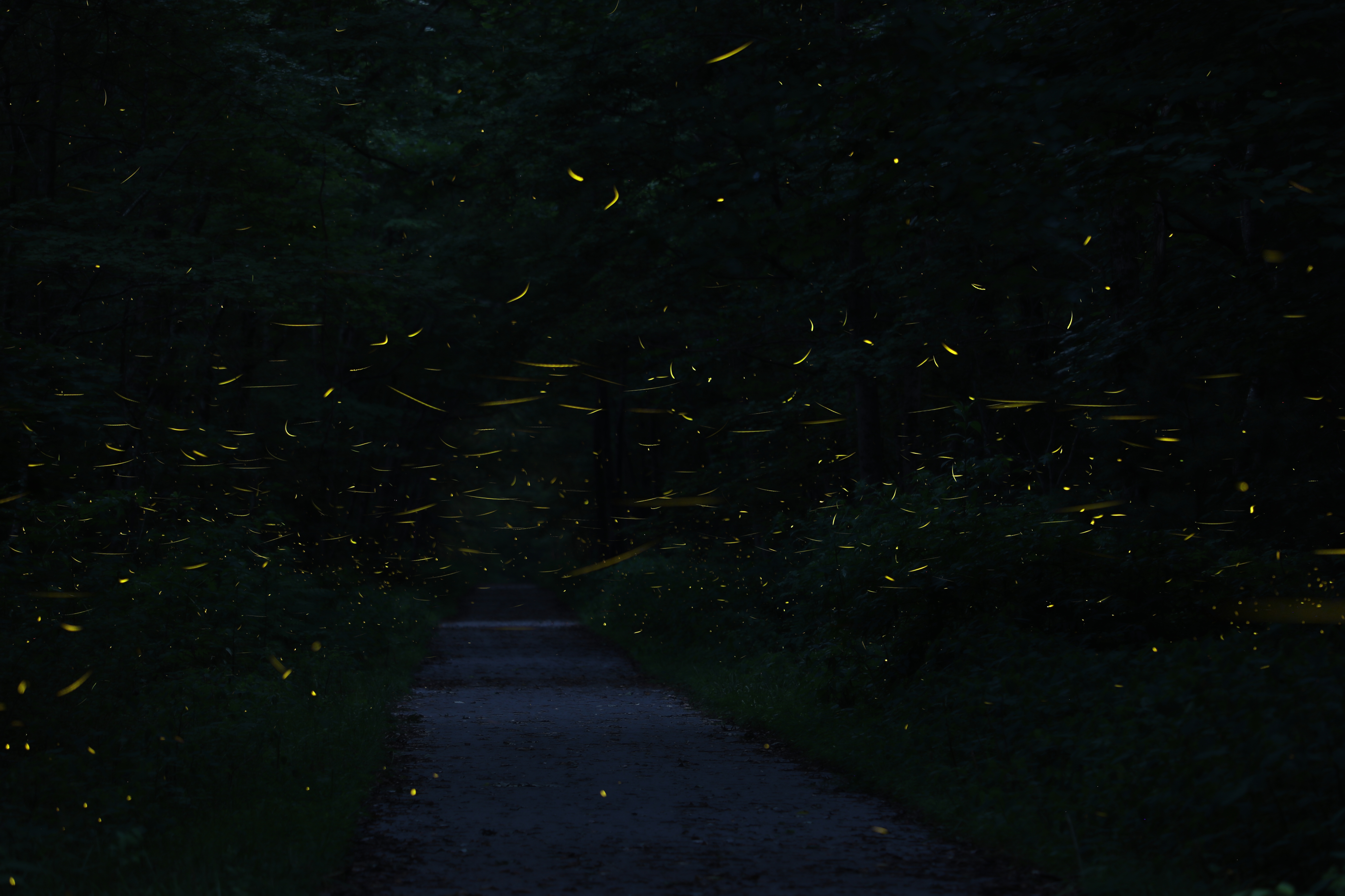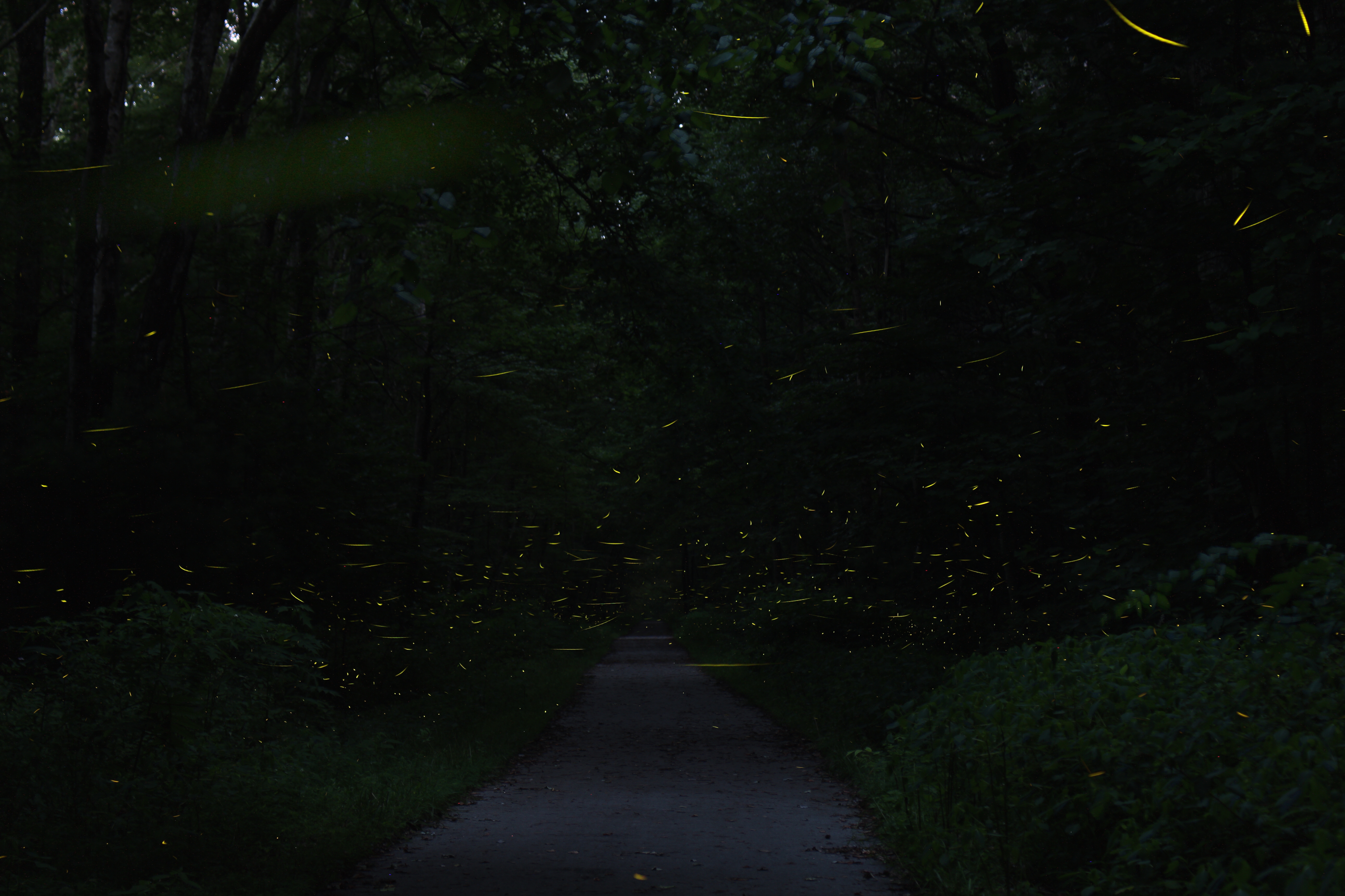Last night I went to the Mountain Goat Trail near Pearl’s to photograph the fireflies. I set up two cameras and felt like the ‘flies might be a little lighter than usual as I observed. The finished product would seem to support this hypothesis. The first picture was taken at 55mm and the second at 135mm.