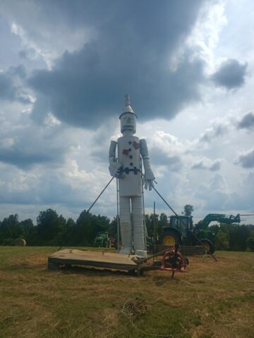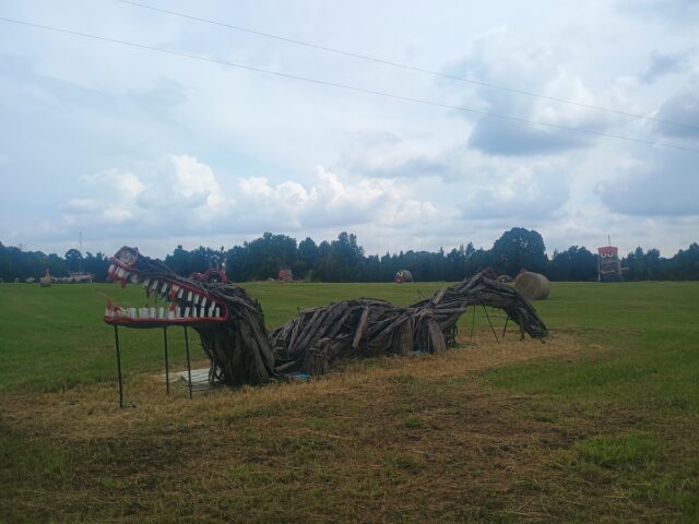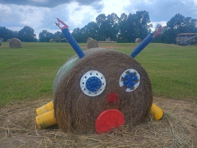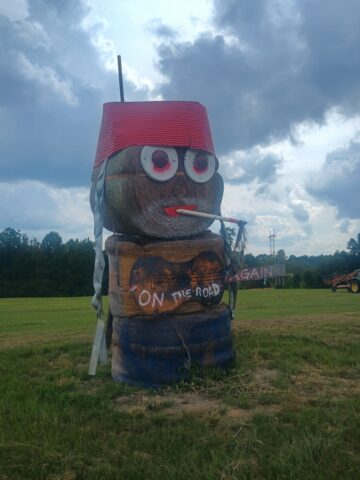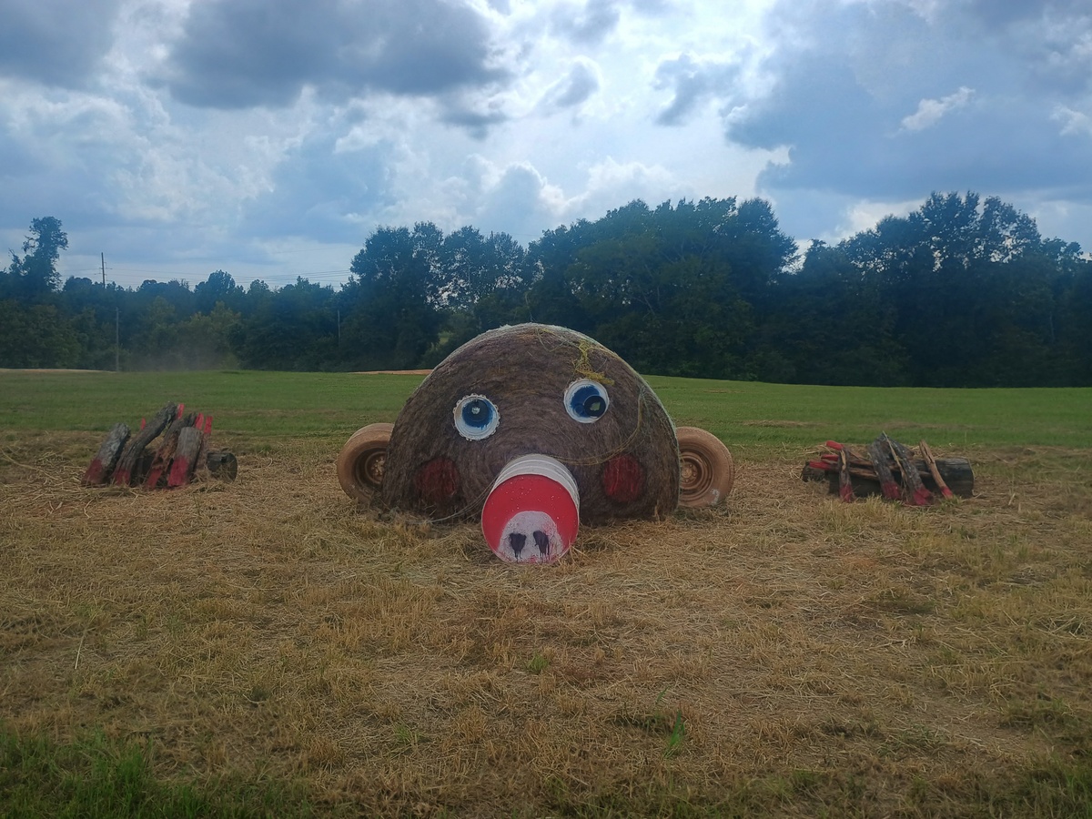 Yesterday we drove down to Forkland, Alabama to gather with kinfolk from my mother’s side of the family. It was nice to see aunts, uncles, and cousins. Luke really enjoyed the socializing as well as the food. Another highlight included the hay bale sculptures at the front of the farm.